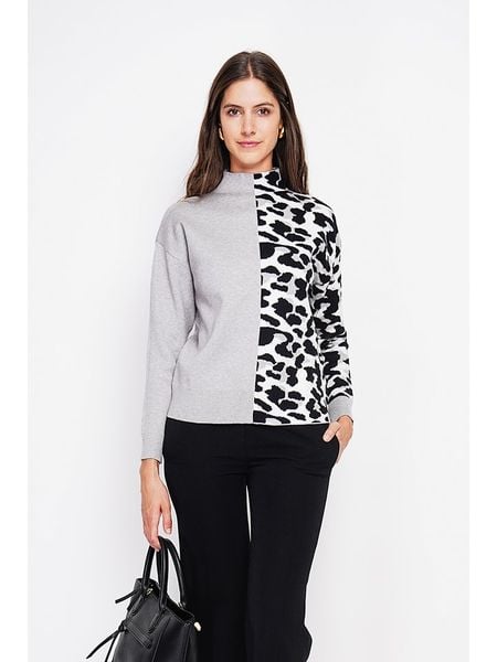 ASSUILI Sweter w kolorze szaro-czarno-białym rozmiar: 40