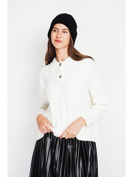 – kołnierz: kent- dekolt: okrągły- zapięcie: skrócona listwa guzikowa- ściągacz: zakończenia rękawów, dolny brzeg- wzór splotu: warkocz- krój: prosty- look: jednokolorowyWskazówka: Na metkach odzieży tej marki znajdują się rozmiary francuskie. Rozmiarówka została przez nas przeliczona. Podane do wyboru warianty rozmiarów odpowiadają standardowym europejskim rozmiarom konfekcji. Prosimy zapoznać się z zamieszczonym objaśnieniem rozmiarów.