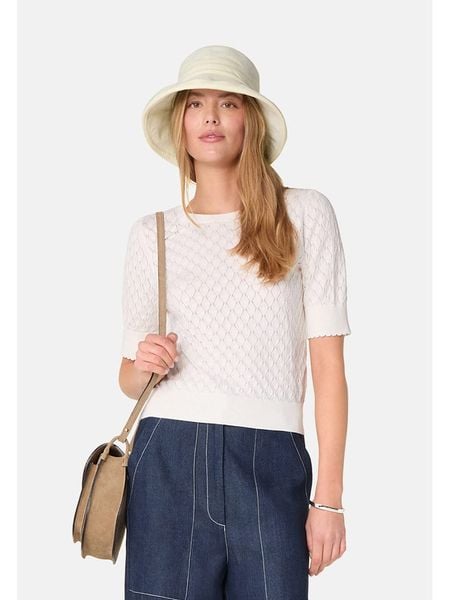 – z dodatkiem kaszmiru- dekolt: okrągły- ściągacz: dekolt, zakończenia rękawów, dolny brzeg- krój: prosty- look: jednokolorowyWskazówka: Na metkach odzieży tej marki znajdują się rozmiary francuskie. Rozmiarówka została przez nas przeliczona. Podane do wyboru warianty rozmiarów odpowiadają standardowym europejskim rozmiarom konfekcji. Prosimy zapoznać się z zamieszczonym objaśnieniem rozmiarów.