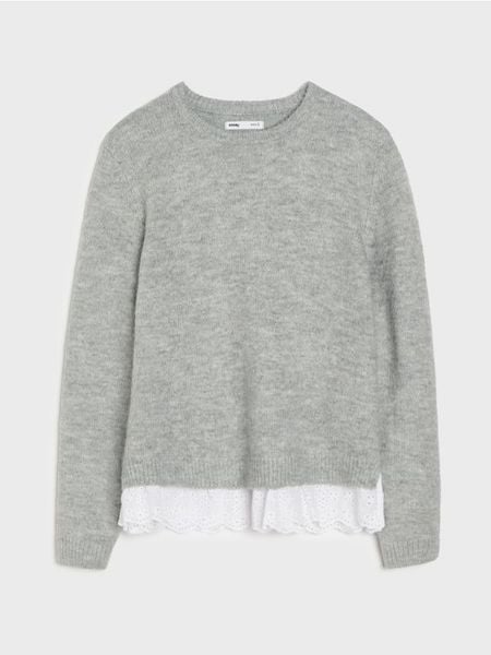 Sinsay – Sweter z haftowanym koszulowym dołem – szary –