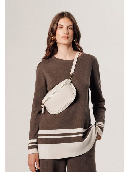 – z dodatkiem wełny- dekolt: okrągły- detale: kontrastujące paski- krój: prosty- look: jednokolorowyWskazówka: Na metkach odzieży tej marki znajdują się rozmiary francuskie. Rozmiarówka została przez nas przeliczona. Podane do wyboru warianty rozmiarów odpowiadają standardowym europejskim rozmiarom konfekcji. Prosimy zapoznać się z zamieszczonym objaśnieniem rozmiarów.