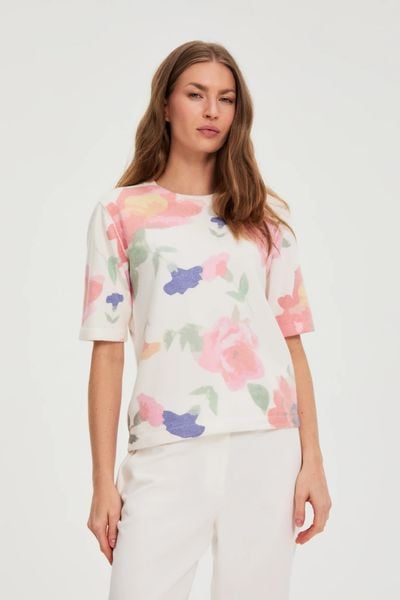 Sweter w kwiaty biały