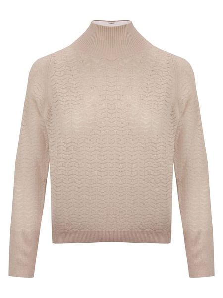 Jasnoróżowy Sweter z Dodatkiem Kaszmiru i Trójkątnym Dekoltem Silefera