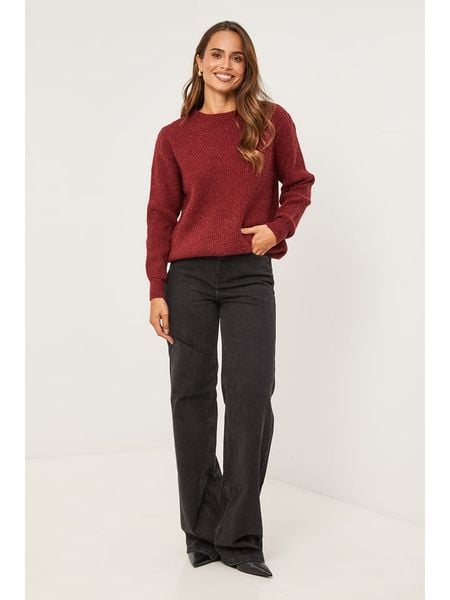 Bordowy Wiskozowy Sweter o Pudełkowym Kroju z Metaliczną Nitką Essmia