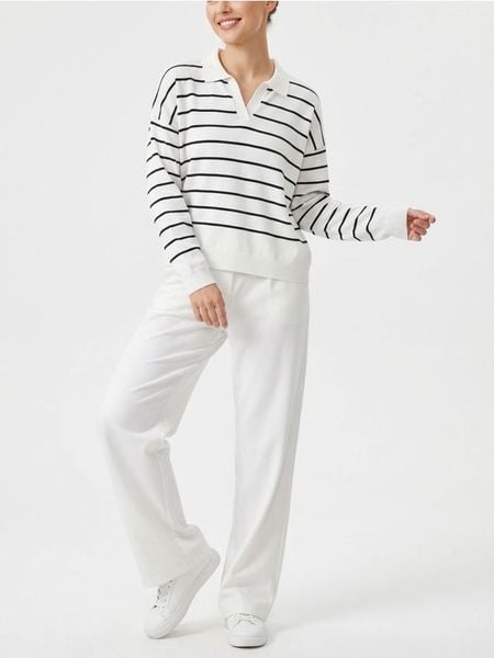 Sweter w paski z kołnierzykiem – biały