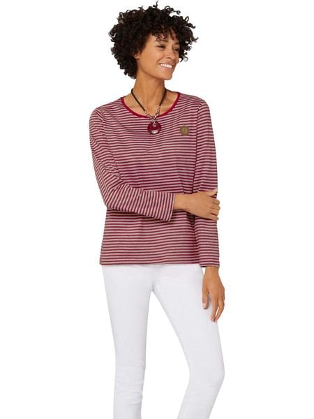 – dekolt: okrągły- naszywki: ze skóry syntetycznej- krój: prosty- wzór: paski