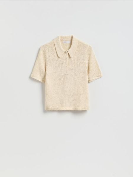 Sweter z krótkim rękawem – kremowy