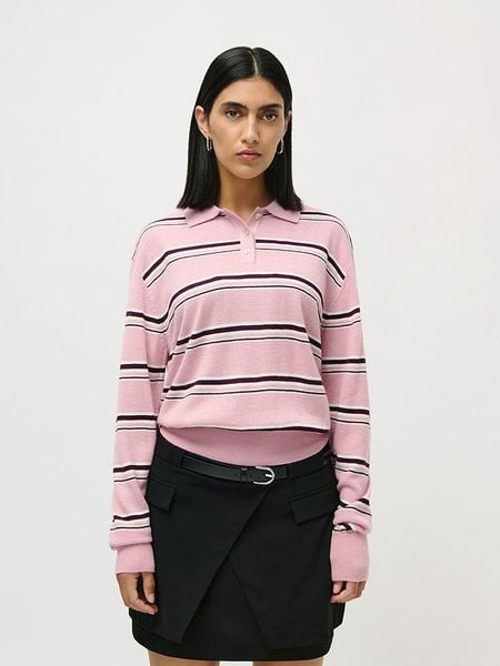 – kołnierz: kent- zapięcie: skrócona listwa guzikowa- ściągacz: zakończenia rękawów, dolny brzeg- krój: prosty- wzór: paski