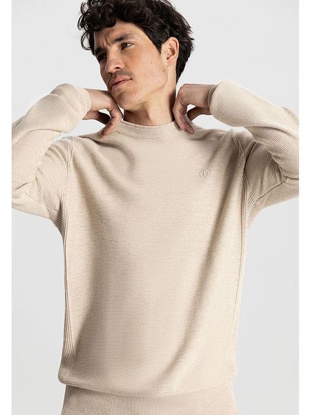 Sweter męski z teksturą i półokrągłym dekoltem - beżowy V6 - Rozmiar: XXL