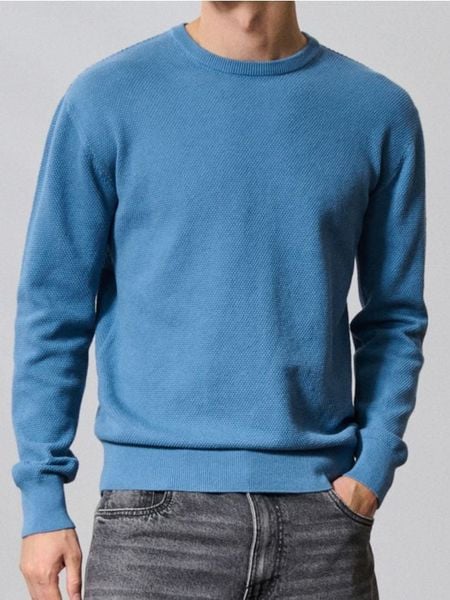 Bawełniany sweter z okrągłym kołnierzem – niebieski