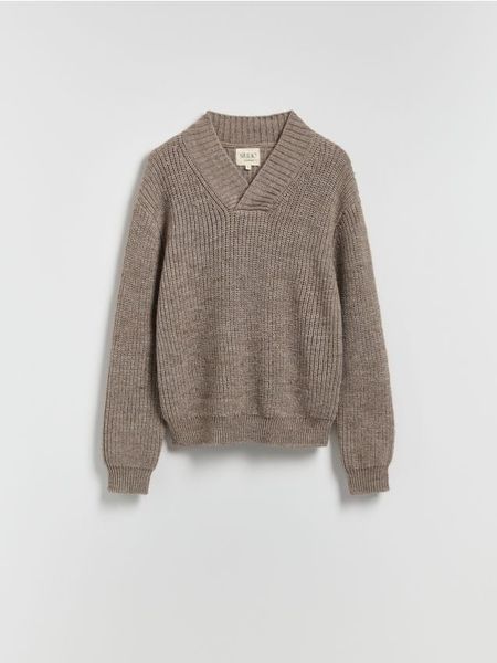 Sweter o luźnym kroju, wykonany z wełny i domieszki alpaki.