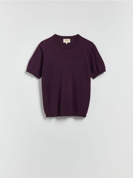 Sweter z krótkim rękawem z dodatkiem wełny – ciemnofioletowy