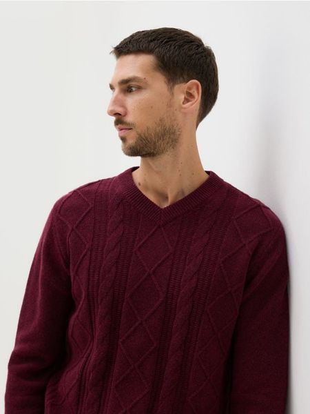 Strukturalny sweter z wełną – bordowy