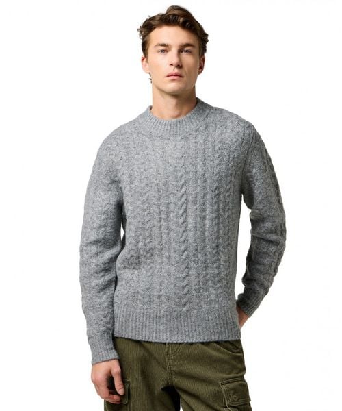 MESKI SWETER WRANGLER CABLE KNIT SWEATER GREY HEATHER 112371666