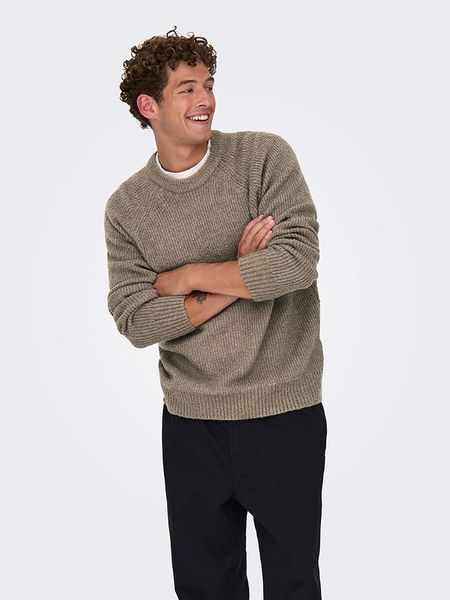 brązowe swetry męskie swetry męskie z okrągłym kołnierzem swetry męskie only & sons mężczyzna only & sons swetry męskie ze sklepu limango.pl mężczyzna limango.pl swetry męskie bez kołnierzyka