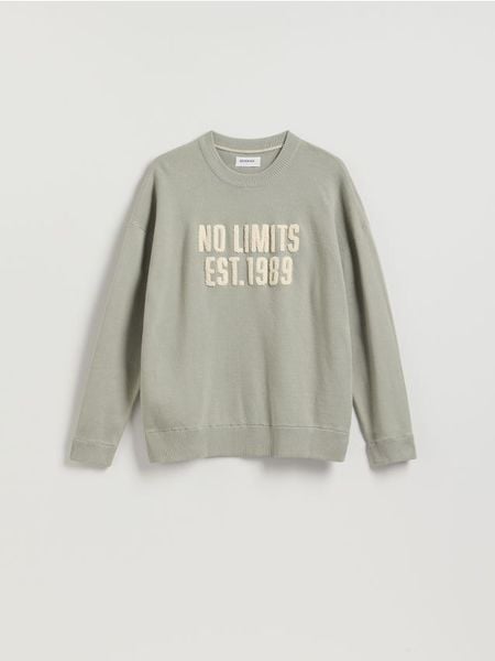 Sweter o prostym kroju, wykonany z bawełnianej dzianiny.
