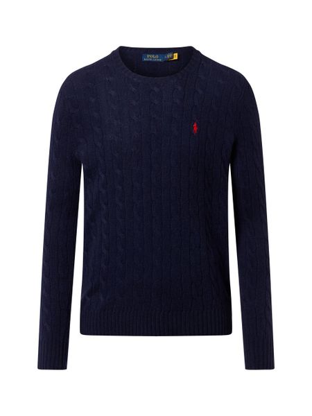 Sweter z dzianiny marki Polo Ralph Lauren wyróżnia się klasycznym wzorem typu cable-knit i wysokiej jakości materiałem – mieszanka wełny i kaszmiru sprawia, że jest idealnym towarzyszem na chłodniejsze dni.
