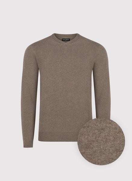 Brązowy męski sweter w serek – Pako Lorente. Bawełniany sweter w brązowym kolorze. Prosty sweter z dekoltem w serek. Sweter V-neck. BASIC.