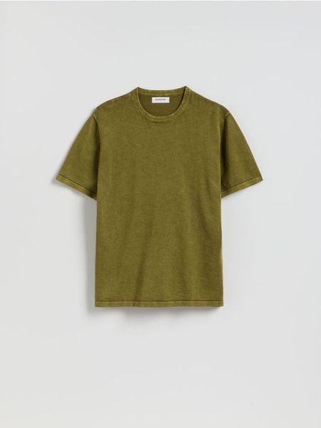 Bawełniany sweter z krótkim rękawem – oliwkowy