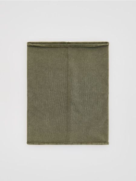 Komin o prostym kroju, wykonany z bawełnianej dzianiny z dodatkiem elastycznych włókien.