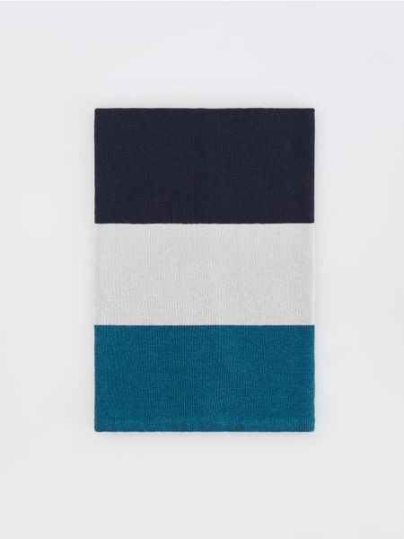 Komin o prostym fasonie, wykonany z dzianiny z bawełną.