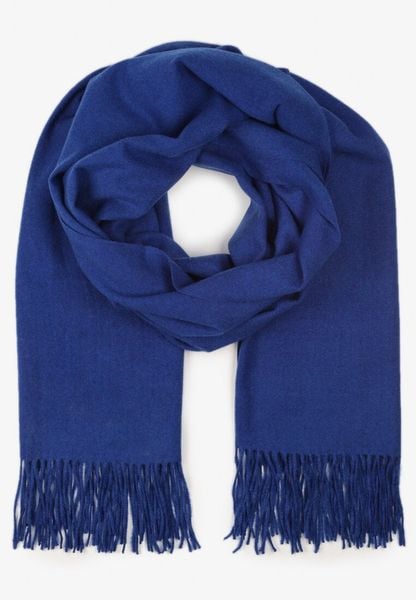 Niebieski Długi Szalik Wiskozowy z Wełną Ozdobiony Frędzlami Portina