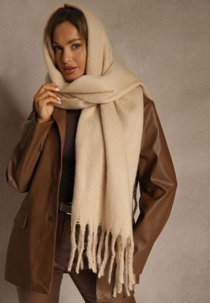 Beżowy Szalik Ozdobiony Frędzlami Owedela