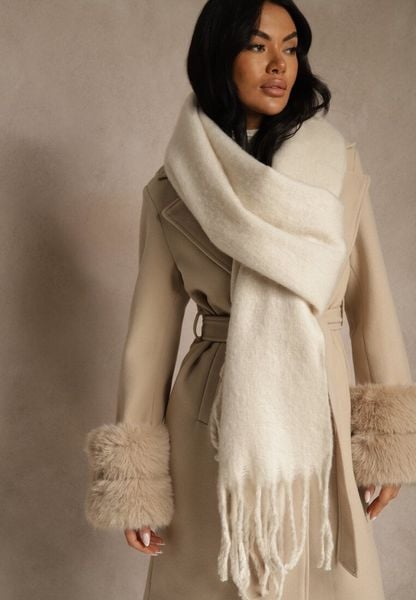 Jasnobeżowy Szalik Ozdobiony Frędzlami Owedela