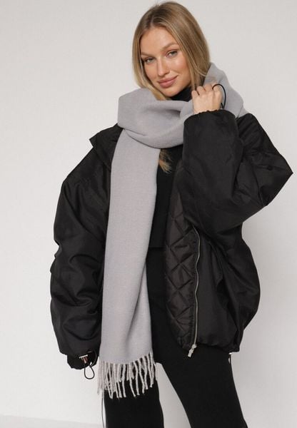 Ciemnoszary Szalik z Bawełny i Wiskozy o Klasycznym Fasonie z Frędzlami Vetirosa