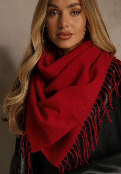 Czerwony Klasyczny Szalik Zakończony Frędzlami Vetiele