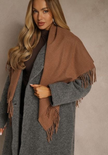 Jasnobrązowy Trójkątny Szalik z Wiskozy i Bawełny z Frędzlami Vetirala