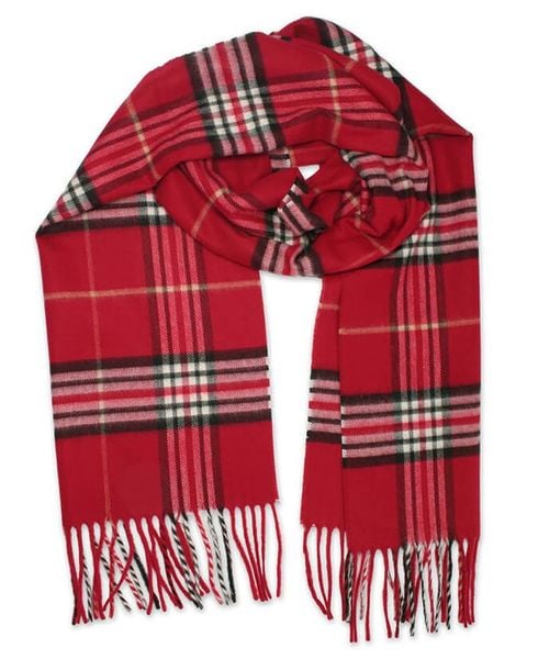 Szalik Czerwony w Kratkę, Miękki, Delikatny, z Frędzlami, Miękki, Cashmink -V.Fraas