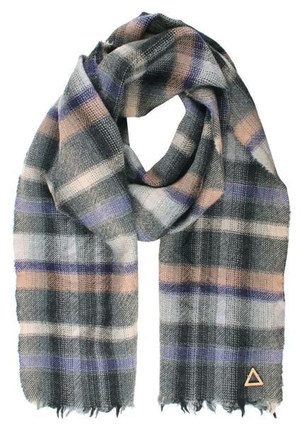 Wełniany Szalik Męski – V. Fraas – Popielata Kratka, Fioletowy Akcent