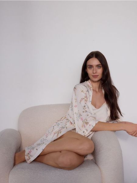 Szlafrok o swobodnym kroju, wykonany z wiskozy.