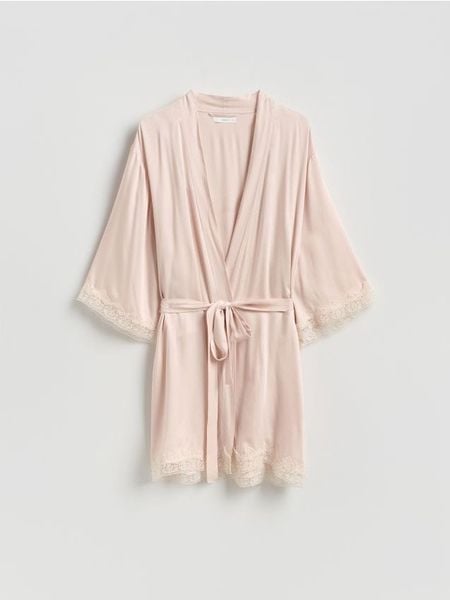 Szlafrok z koronką – kremowy