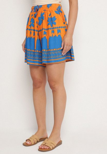 Pomarańczowe Wiskozowe Szorty w Abstrakcyjny Wzór Evintta