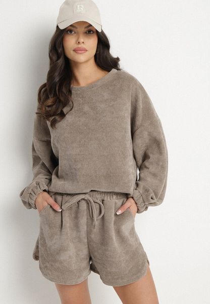 Ciemnobeżowy Dzianinowy Komplet Bluza i Szorty Novanisa