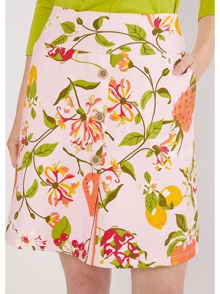 – z bawełny organicznej- wysokość pasa: high waist- pas / ściągacz: elastyczny- kieszenie: wpuszczane- krój: luźny- wzór: graficzny