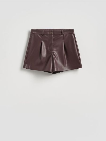 Szorty o swobodnym kroju, wykonane z imitacji skóry.