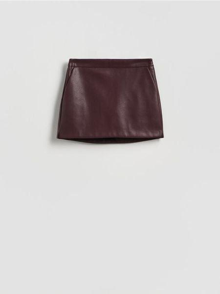 Spódnico-szorty z imitacji skóry – mahoniowy