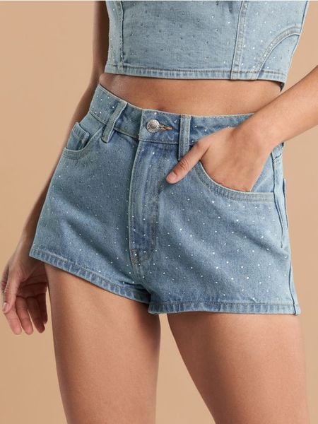 Sinsay – Szorty jeansowe – niebieski – 100% bawełny,zapięcie na suwak i guzik,pięć kieszeni,ozdobne cyrkonie