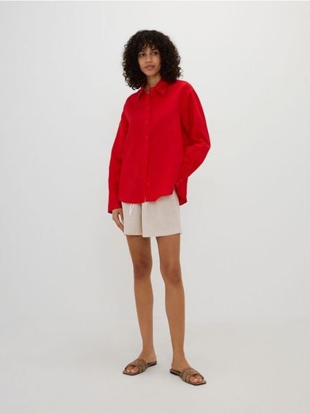 Szorty o swobodnym kroju, uszyte z tkaniny z lnem i wiskozą.