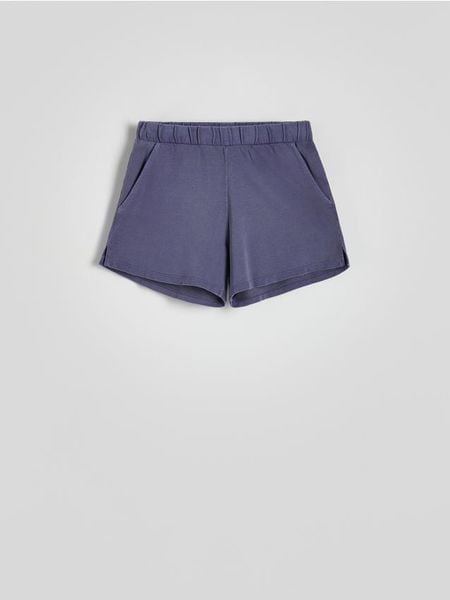Szorty o swobodnym kroju, uszyte z bawełnianej dzianiny.
