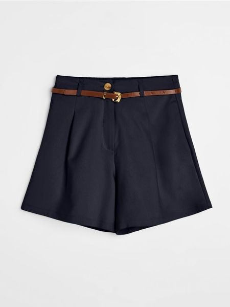 Sinsay – Bawełniane szorty straight z paskiem – granatowy –