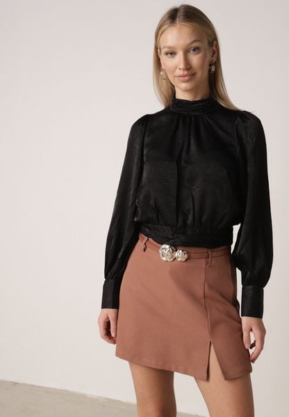 Brązowe Spódnico-Szorty High Waist Ozdobione Metaliczną Aplikacją i Paskiem Retness