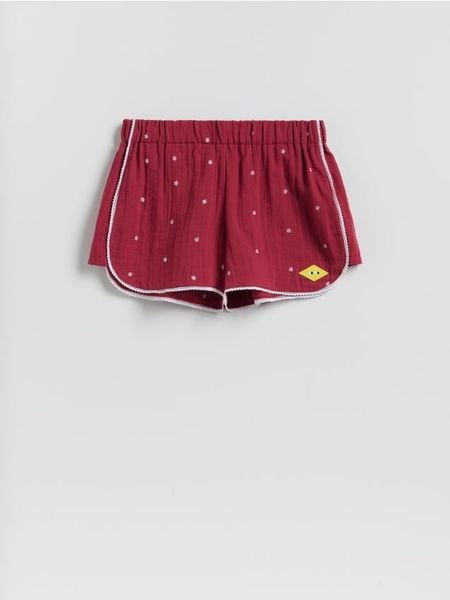 Bawełniane szorty z haftem – czerwony