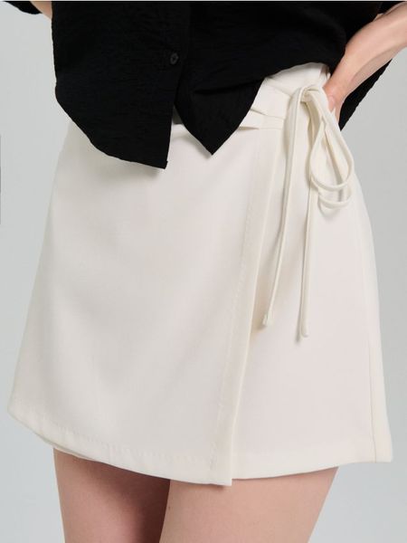 Spódnico-spodenki z ozdobnym wiązaniem – kremowy