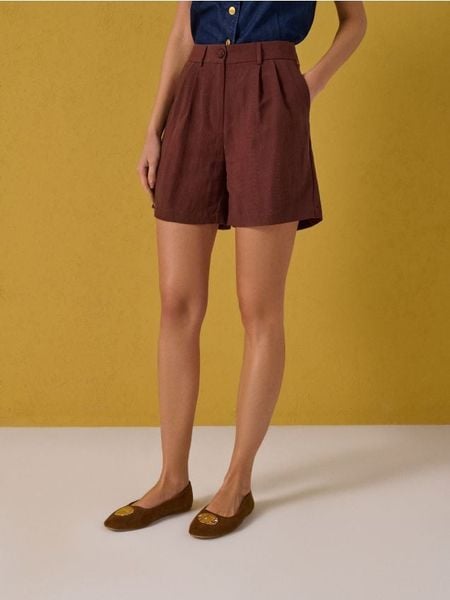 Szorty z domieszką lnu – beżowy