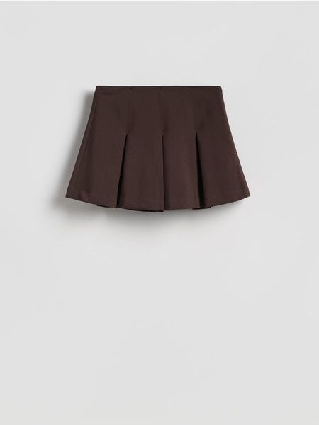 Spódnico-szorty o trapezowym kroju, wykonane z tkaniny z dodatkiem wiskozy.