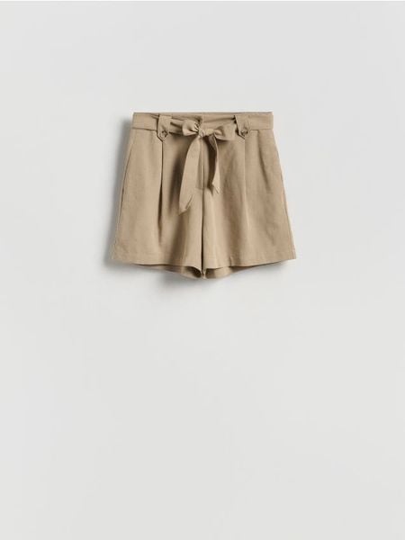 Szorty o swobodnym kroju, wykonane z tkaniny z dodatkiem lnu.
